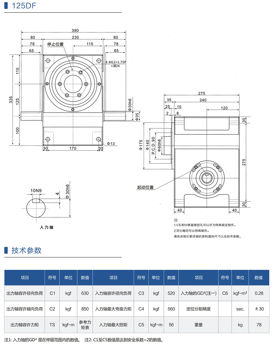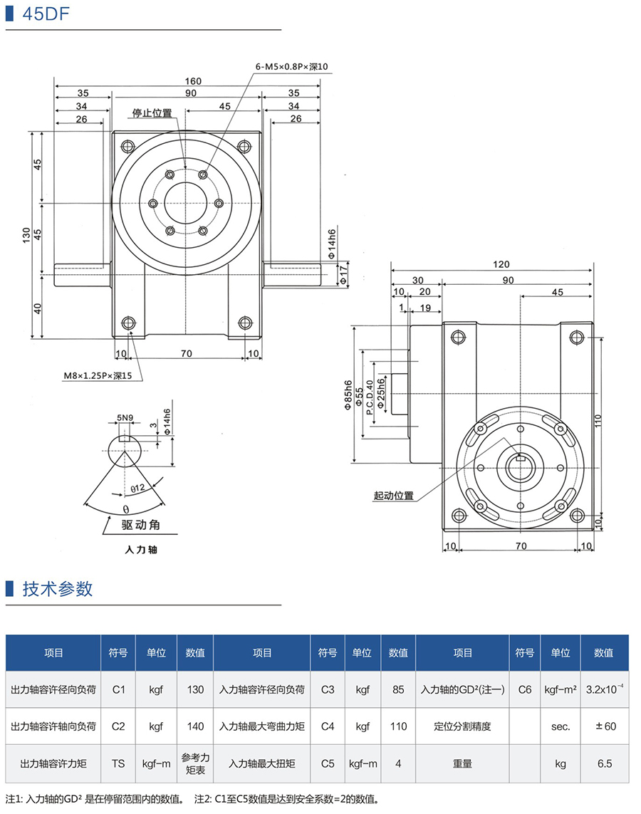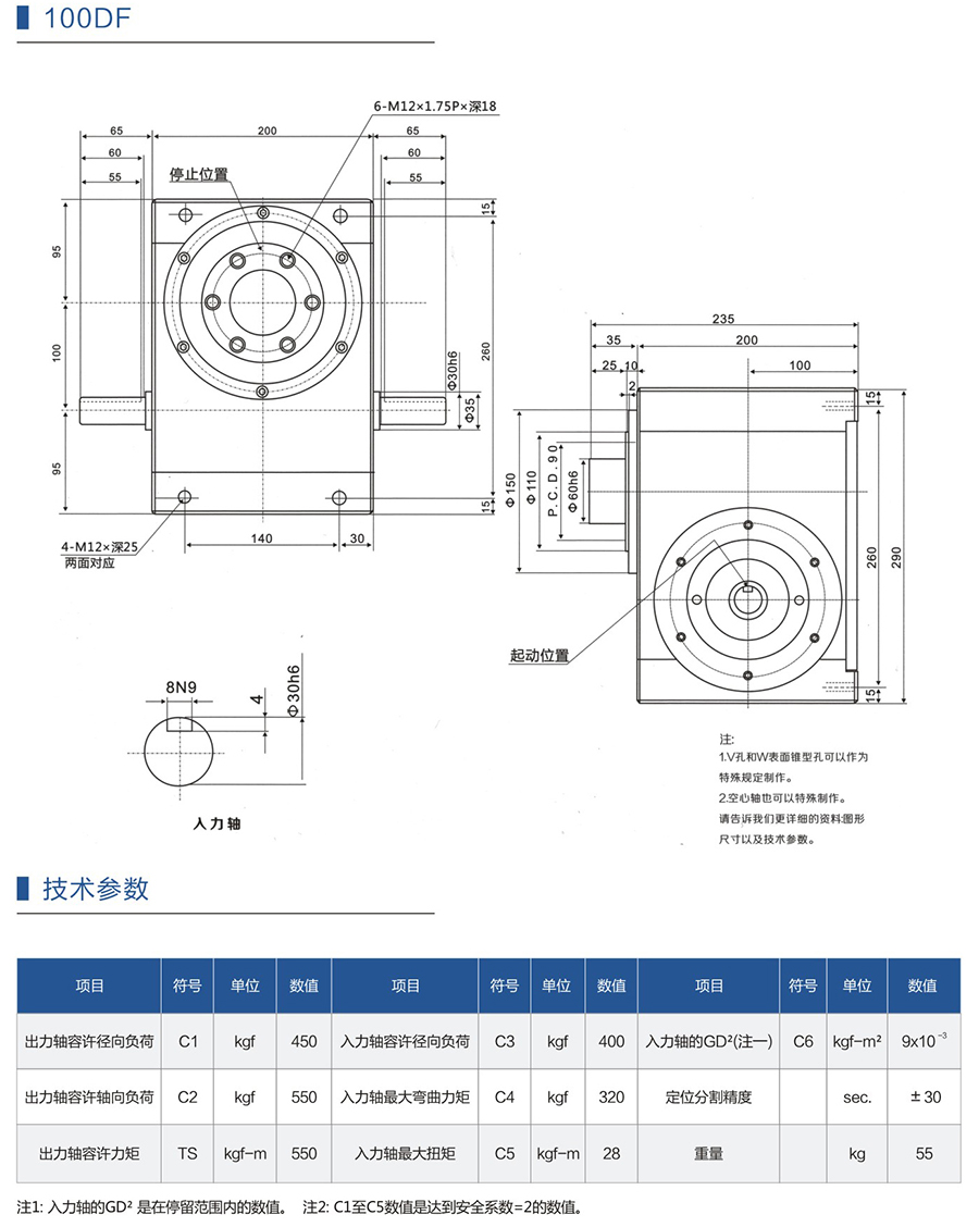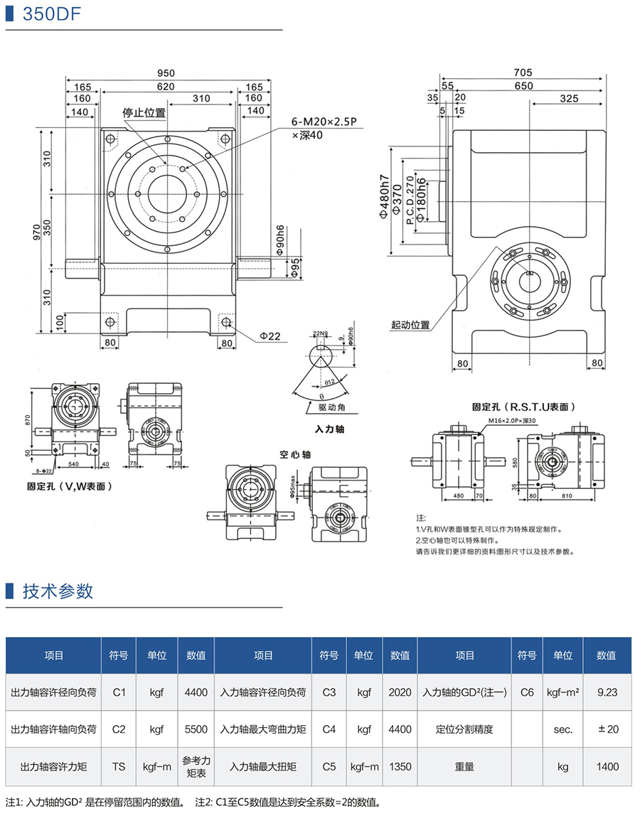 此机种具有重负荷特性,可承受较大的垂直径向或轴向压力,其输出轴为法兰盘式设计,有凸缘中心、盘面螺孔、定位、销孔、固定面宽大,可使链接件更具坚实平稳。最能适用于较大负荷的回转式圆盘驱动场合,被广泛使用在各类盘式加工机械及类似机构的产业机械;自动化间歇驱动部,驱动圆盘。