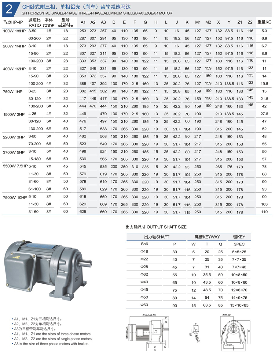 GH卧式附三相、单相铝壳(刹车)齿轮减速马达